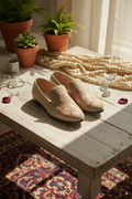 Beige Punjabi Jutti with Elegant Peacock Motif
