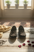An elegant black Punjabi jutti adorned with beadwork and multicolor stones. A bold choice for weddings, evening wear, and festive celebrations.