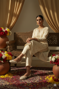 This ivory Punjabi jutti showcases delicate bead embroidery for a timeless, elegant look. Best paired with pastel and gold-toned ethnic wear.