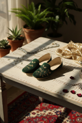 Crafted in rich emerald green, this Punjabi jutti is adorned with golden embroidery for a royal, timeless look. Perfect with kurtas and lehengas.