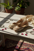 A luxurious ivory Punjabi jutti adorned with pearl-style beadwork. Lightweight yet grand, perfect for weddings, bridal wear, and reception outfits.